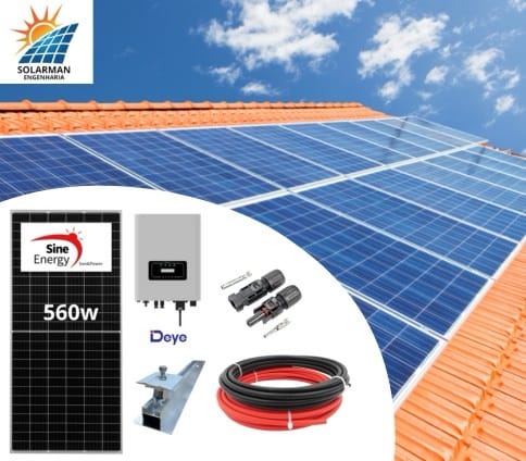 Kit geração 7,28kwp mon. 220v inversor Deye 7,5kW e placas Sine 560w para estrutura fibromadeira/fibrocimento